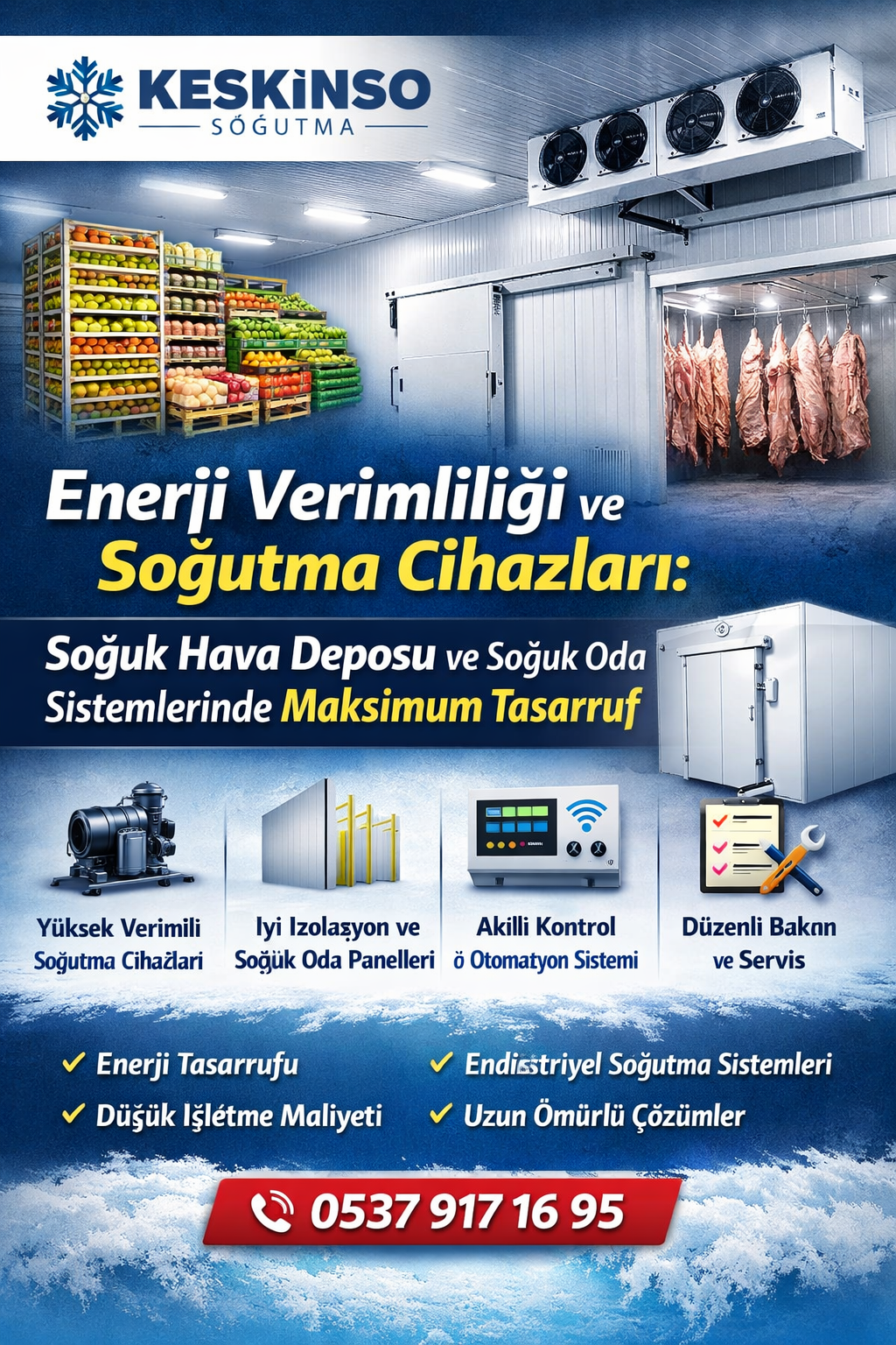 Enerji verimli soğuk hava deposu, soğuk oda kurulumu ve soğutma cihazları için hemen iletişime geçin: 0537 917 16 95