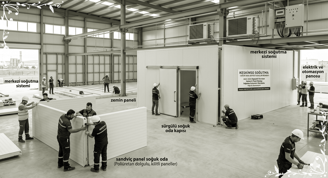 Bir soğuk oda montajı profesyonel ekiplerce şu sırayla gerçekleştirilir:
